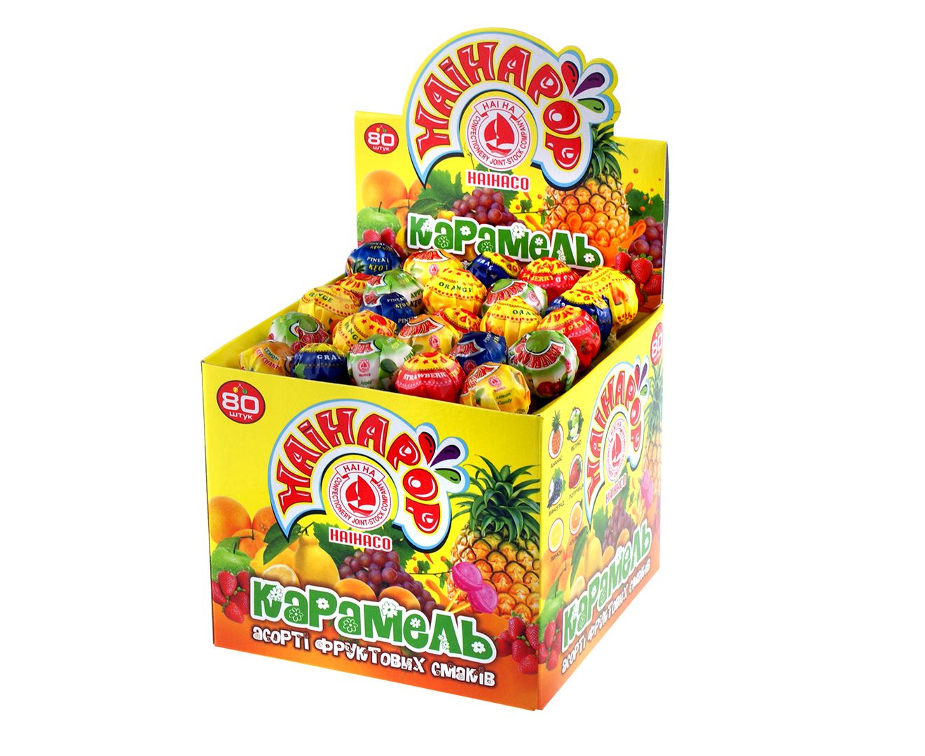 Льодяники дбайливо укладені в сонячний шоу-бокс.