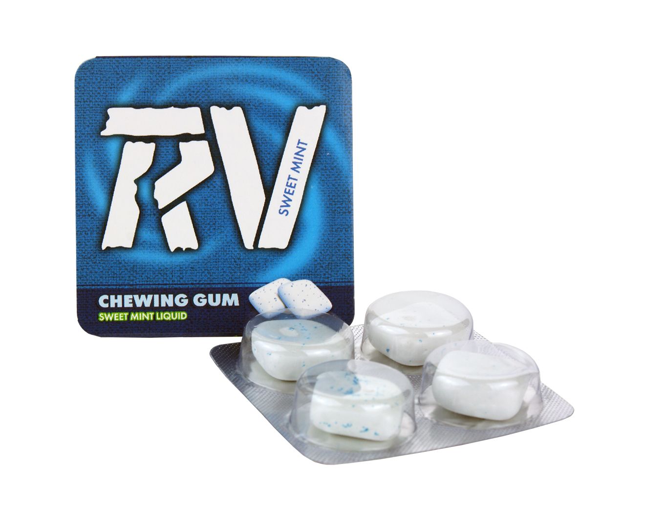 Чотири жувальні подушечки “RV” з м'ятним наповнювачем чекають на вас у кожному з 12 блістерів упаковки.